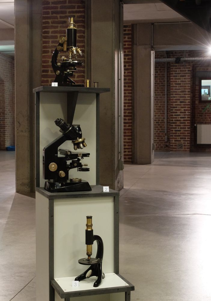 les 3 microscopes de la vitrine ronde :
